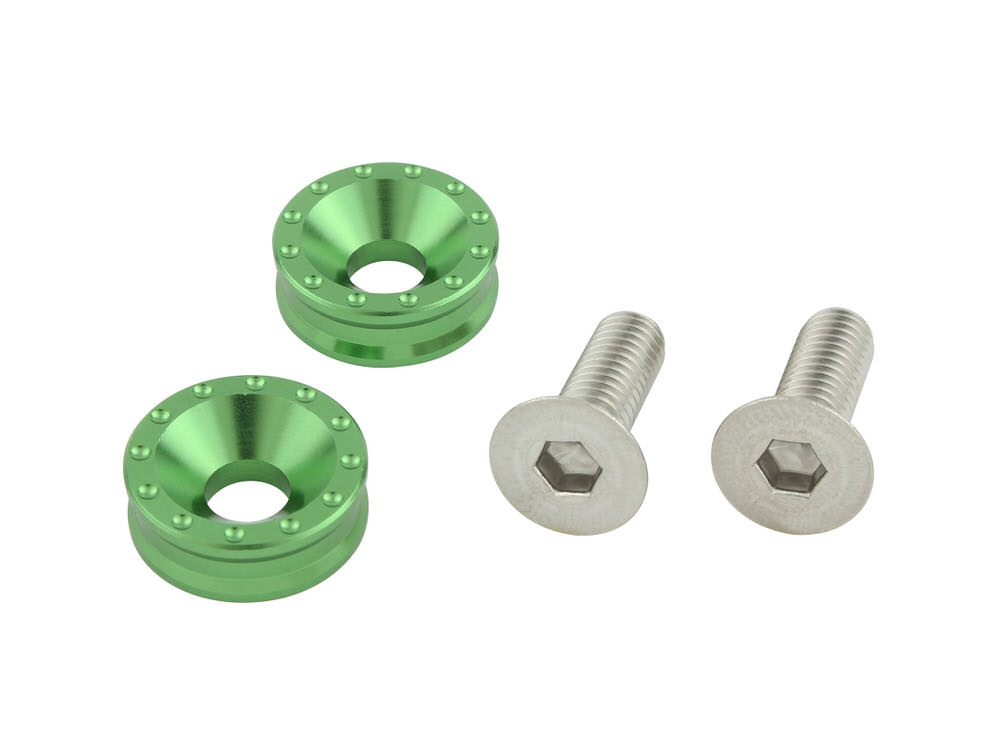 ナンバー周りのアクセントとなるライセンスプレートホルダーに新形状登場POSH社ライセンスプレートと合わせて使用することで、ナンバー周りのドレスアップがより一層際立ちます。◆アルミ削り出し/アルマイト・メッキ仕上げ◆ステンレス皿ネジM6X18mm付属◆2個入り◆外径約17.5mm/厚み6mm◆日本製