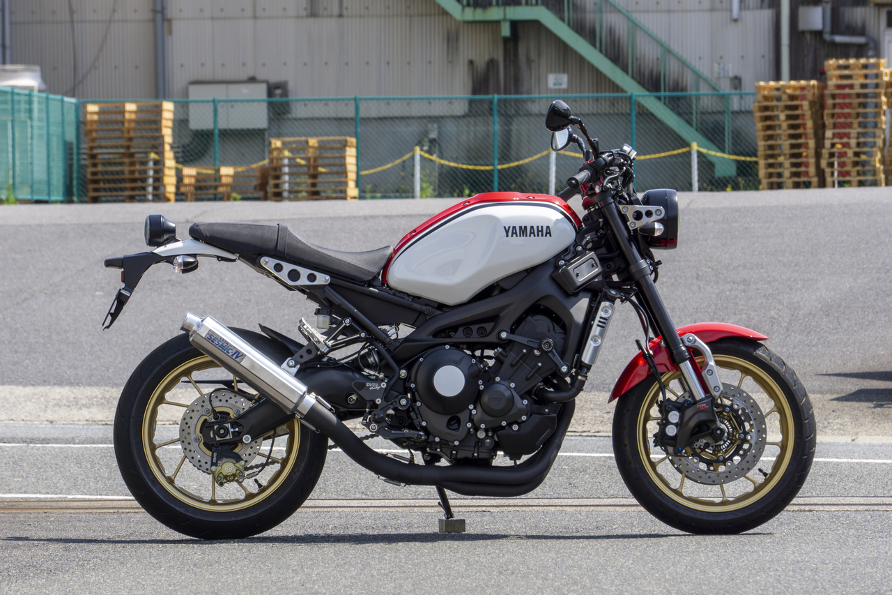 XSR900用としてSESMICサイレンサーが復活。ステンレスエキパイにリブ付きラウンド形状のアルミサイレンサーを組み合わせる事で、80年代を彷彿とさせるネオクラシックスタイルを創出しました。さらにエキパイを耐熱BLK塗装にて仕上げる事で耐久性の向上とクラシカルなイメージを強調。外観は昔懐かしいSESMIC-IIそのままに、内部構造を一新。8耐などで培ってきたテクノロジーをフィードバックすることで、従来ではなかった耐久性の改善と性能UPを実現。フルエキゾーストマフラーステンエキパイ BLK:φ38.0-42.7ステンテールパイプ:φ60.5アルミサイレンサー:350mm(SESMIC-IV)音量:94dB(近接)/80dB(加速)重量:kg(STD:kg)政府認証品マフラー(対応型式:2BL-RN-56J、2BL-RN51J)H22年騒音規制/H19年排ガス規制ドレン:OKフィルター:OKタンデム:OKネオクラシックという名を体現したマフラーになります。MT-09用として実績のあるエキゾーストをXSR900に合わせ微調節、そして専用設計のサイレンサー構造によって、低速域のギクシャクを改善し発進からリニアに加速する仕様に。XSRの性能を引き出し街乗りからスポーツ走行まで適応する確かな走行性能と心地の良いOVERサウンドを楽しむことが出来ます。