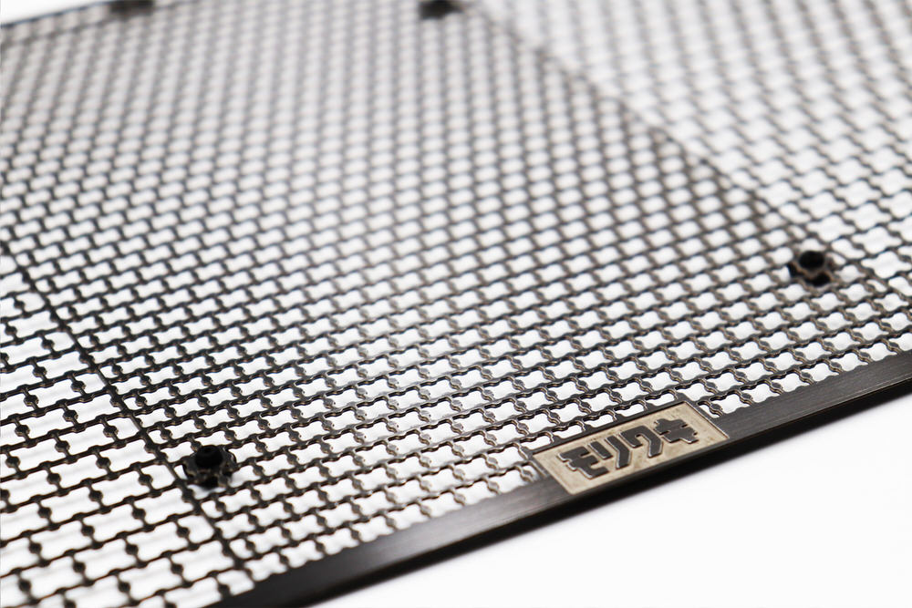 MORIWAKI Radiator Core Guard「ラジエターコアガードの役目」エンジンの冷却を行うラジエター、その心臓部分ともいえるコアは非常に薄いフィン形状で構成されています。その為、フロントタイヤから巻き上げる石やタイヤカスによりダメージを受けた場合フィンが曲り冷却効率が著しく低下します。またウォーターラインを破損した場合は走行不可になる場合も想定されます。その様な可能性からコアを保護する目的のパーツがコアガードとなります。「サクラパイプの断面形状で構成されるメッシュデザイン」コア部分のデザインはモリワキの独創性をけん引してきたフレームワークを連想させる、サクラパイプ断面形状とすることで他に類を見ないシンプルかつ上品なデザインとなりました。十分な開口率と強度を両立させたメッシュパターンは飛び石のダメージが高いセンター部分を細かく、冷却効率の高い両サイドを粗めのパターンに仕上げています。「材質にステンレスを選ぶ理由」ラジエター本来の性能を発揮するため可能な限り開口率を広げたい、そのためには材質本来の強度も必要になります。車両の前面に立ち、過酷な状況にさらされるからこそ必要となる耐久性/耐腐食性。これらの条件をクリアするのが今回選定されたステンレス材(SUS304)となります。材質:ステンレスカラー:ブラック商品重量 205kg梱包サイズ 290×380×90mm梱包重量 420kg