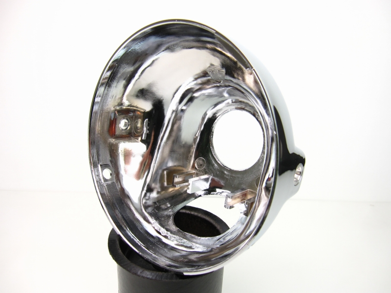 モンキー、ゴリラ、エイプのライトレンズが取り付け可能なヘッドライトケースです。スピードメーターをハンドルバーへ移設した場合のケースです。インジゲーターランプはありません。純正レンズ、ミニモト社マルチリフレクターレンズが取り付け可能です。仕様レンズ φ130(mm)取付ピッチ 157(mm)ヘッドライトステー穴 M8後ハーネス出入り口 φ約50(mm)下ハーネス出入り口 φ約42(mm)