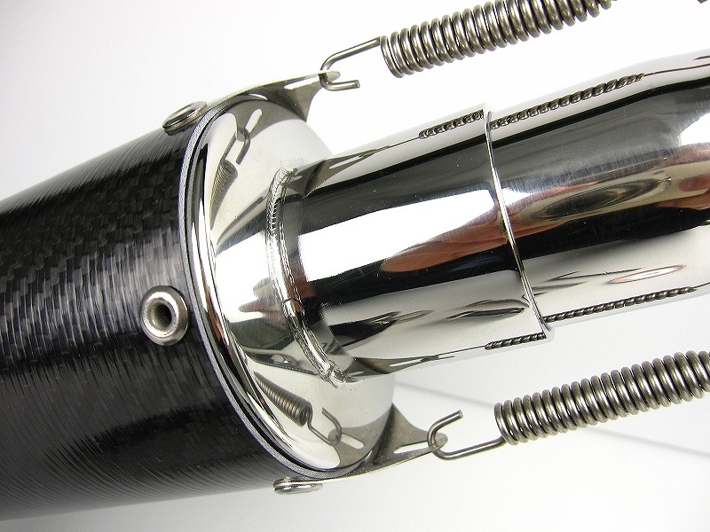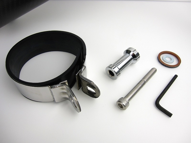 Z50Jモンキー、ゴリラ専用アップマフラーです。ノーマルヘッドやZシリーズヘッドへ取り付けが可能です。アルミ製CNC加工を施したエンドバッフルは脱着が可能です。ステンレス製エキゾーストパイプ仕様、サイレンサーはステンレス素材にカーボン巻きを施しています。耐久性を兼ね備えたエキゾーストパイプと無駄を省き、基本性能に重点を置いたサイレンサー設計です。ステンレス製のサイレンサーバンド、ステーは耐久性があります。またバフ掛けを施しています。サイズフランジ内径 φ25mmエキパイ外径 φ31mmエキパイとサイレンサー接続部分のエキパイ外径 φ42.5mmサイレンサー排気口径 φ58mmサイレンサー外径 φ80mm付属品・ステンレス製エキゾーストパイプ・・・1ヶ・ステンレス製カーボン巻きサイレンサー・・・1ヶ・ステンレス製サイレンサーバンド・・・1ヶ・アルミ製ステー・・・1ヶ・アルミ製エンドバッフル・・・1ヶ・サイレンサーバンド用ゴムプレート・・・1ヶ・フイッティングスプリング・・・2ヶ・シリンダーヘッドナット・・・2ヶ・丸型シリンダーヘッドガスケット・・・1ヶ・キャップボルト(半ネジ)M8×70・・・1ヶ・キャップボルトM5×10・・・1ヶ・スプリングワッシャーM8・・・1ヶ・スプリングワッシャーM5・・・1ヶ・平ワッシャーM8・・・1ヶ対応排気量49〜88cc(レース用マフラーです。)こちらは取り付け不可:モンキー(FI)Z50J9 AB27-1900001〜