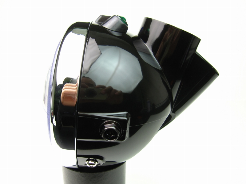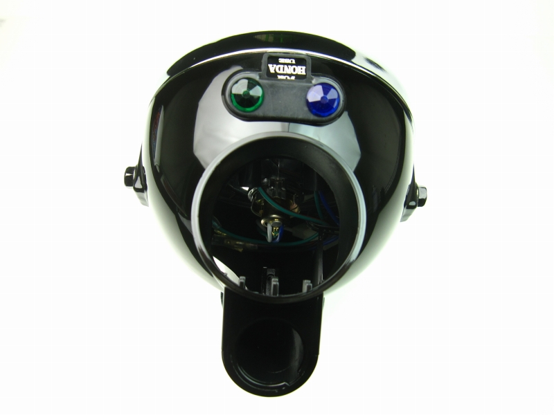 ダイヤモンドカットリフレクターで高輝度なヘッドライトです。5L/FIモンキー、ゴリラ、エイプ純正ヘッドライトケースセットと交換する高輝度化パーツです。ヘッドライトの取付けピッチは純正フォーク用です。スーパーホワイトバルブ付属で段違いの明るさいを発揮します。ホンダ純正ヘッドライトケースにも使用可能なレンズセットです。ホンダ純正フォークへボルトオンできます。カラーレンズ クリアケース ブラック製品詳細レンズ φ130mm取付ピッチ 157mmヘッドライトステー穴 M8口金 P15d-25-1HI/LO切り替えタイプ12V30/30W付属品スーパーホワイトバルブ 1ヶメーター固定用スプリング 1ヶ※6、12Vモンキー共通コネクター(110型3極端子コネクター) ※FIモンキー、モンキーAB27(キャブレター車)は純正コネクターをご使用ください)コネクタータイプは年式により異なります。FI、AB27、ゴリラ、エイプは純正ライトコネクターを再利用ください。6V電球はP15d-25-1(マツシマ規格 PH7)をご使用ください。スピードメーターはヘッドライトとは別体に仕様変更する場合にご使用いただけるヘッドライトです。