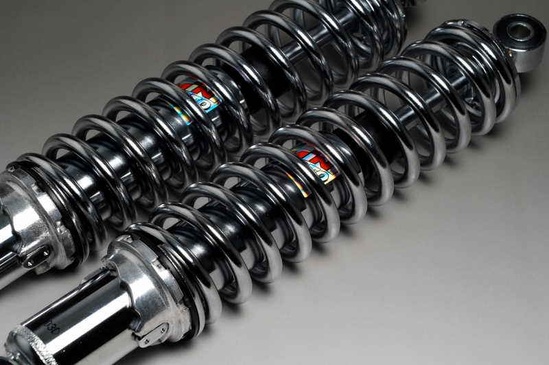 モンキー125(JB02)専用設計のリアショックアブソーバーです。純正比20%アップの強化スプリングをセットしました。アスファルト路面の凸凹をなめるように駆け抜けるためのリアショックです。カム式スプリングイニシャル調整(5段)が可能です。長距離ツーリングの場面で疲労を軽減できるリアショックです。■仕様オイルダンパー式有効長 335mmロッド径 12.7mmシリンダー外径 39mmスプリング線径 φ7.6mmスプリング最大径 φ60mmプリロード量 70mmプリロード範囲 5段階スプリングレート 1.65±0.17kg/mmカム式スプリングイニシャル調整(5段)■入り数:2本■カラーボディ クロームスプリング クローム