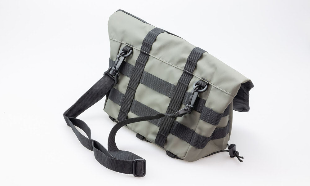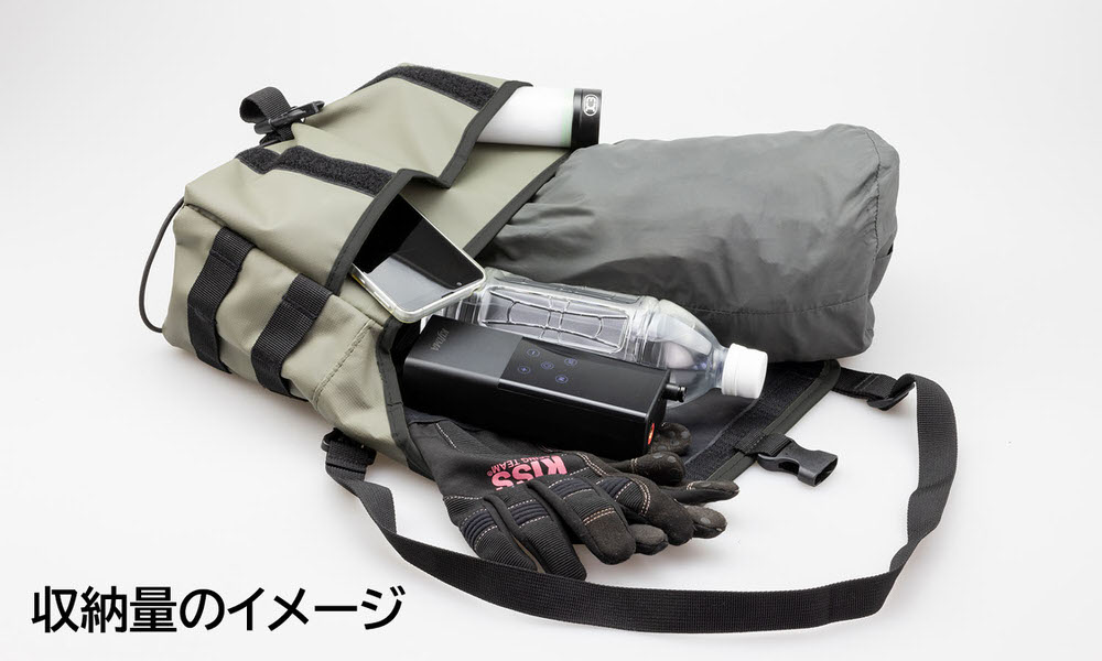フォールディングフラップで防滴性に優れコンパクトで多機能に使えるお洒落なツール&ショルダーバッグ。容量4.3Lに加え底面には外付け可能なゴム紐を配置。見た目以上の収納力。フラップの留めはベルクロテープとバックルのダブル仕様。フラップをメイン収納の他にポケットが2箇所、すぐに取り出したい物の収納にお勧めです。内部には2つのメッシュポケットと大型ポケットを配置。細かいアイテムの収納に使い分ける事で綺麗に収まります。付属のショルダーベルトを装着することでオン・オフ問わずショルダーバッグとして使うことが出来ます。急な雨でも安心のレインカバーも付属しております。※バッグ本体縫い目部分に防水処理は施されておりません。※レインカバー装着時でもバッグ背面より雨水が浸入する事がございます。【商品構成】BAG本体・固定ベルト×3・レインカバー・ショルダーベルト【バッグ本体サイズ】16(H)×25(W)×12(D)cm【容量】4.3L【最大収納重量】1.2kg【材質】ポリエステル/PVC※ご使用の環境(光源)により色味が異なります。ご了承ください。