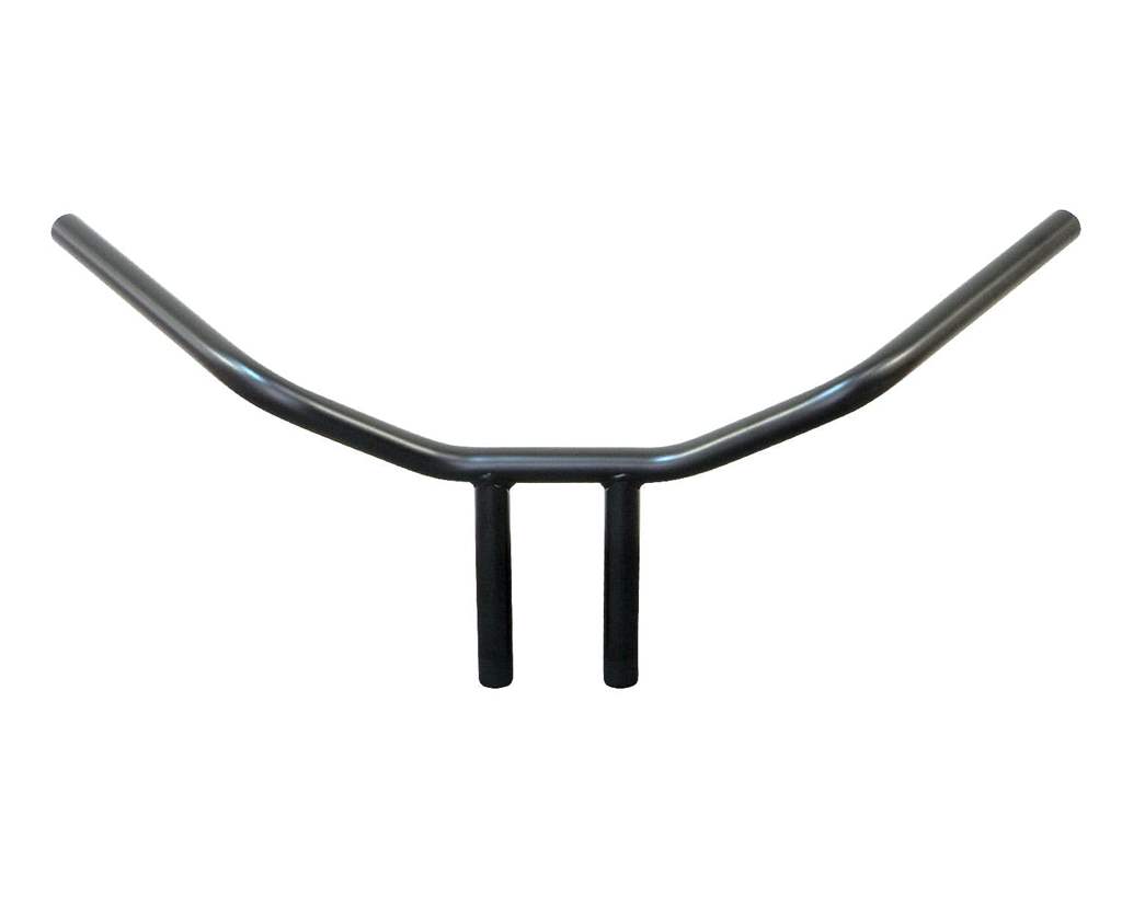 色:ブラックサイズ:全幅:約730mm 高さ:約160mm(ライザー底部からハンドル中心まで)プルバック:約130mm エンドライズ:約330mm対応ライザーボルトサイズ:1/2-13適合:純正トップブリッジのライザー間隔に準拠素材:スチール内容物:ハンドルバー×1注意事項:配線逃がし用のヘコミが無いタイプです。電子スロットルやトップブリッジとライザーが一体式のモデルには対応しません。商品説明:人気のスーパーバーとライザーの融合により一体感が得られるハンドルバーですライザーを生やす位置を試行錯誤して理想のグリップ位置を導き出した逸品であり、フリスコスタイルやクラブスタイルをはじめとし幅広いスタイルに適応します。車両のイメージチェンジに是非!