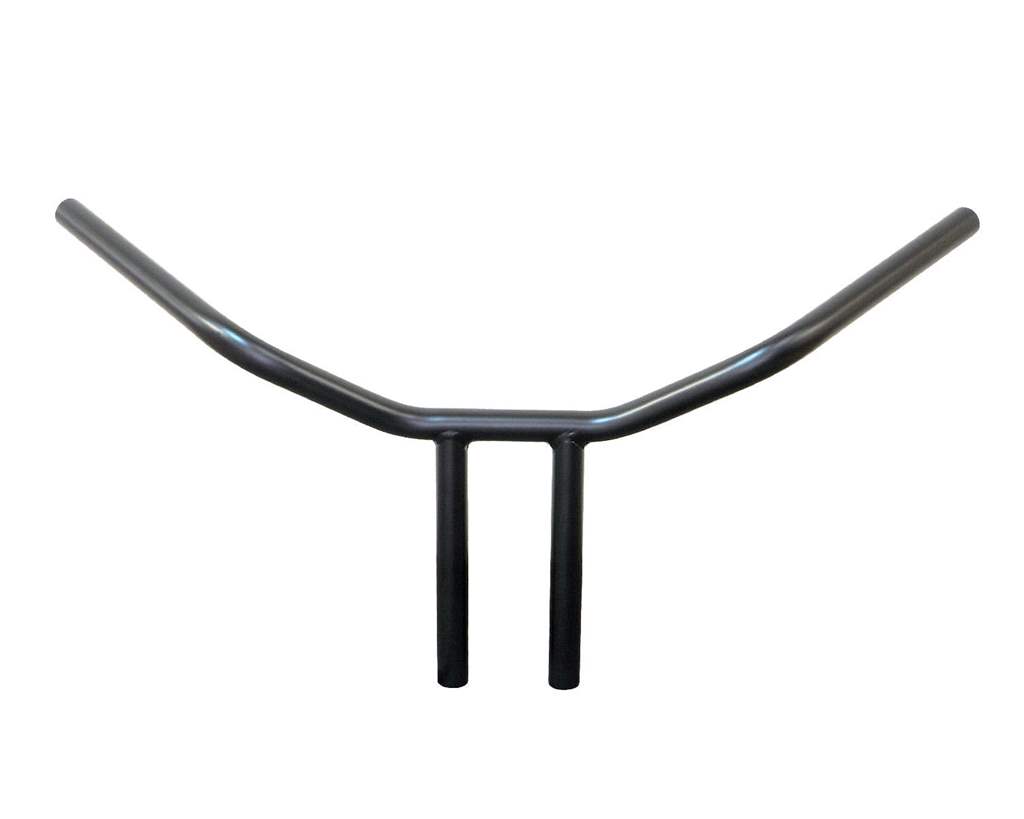 色:ブラックサイズ:全幅:約730mm 高さ:約220mm(ライザー底部からハンドル中心まで)プルバック:約130mm エンドライズ:約380mm対応ライザーボルトサイズ:1/2-13適合:純正トップブリッジのライザー間隔に準拠素材:スチール内容物:ハンドルバー×1注意事項:電子スロットルやトップブリッジとライザーが一体式のモデルには対応しません。当ハンドルバーには配線逃がし用のヘコミがあります。商品説明:人気のスーパーバーとライザーの融合により一体感が得られるハンドルバーですライザーを生やす位置を試行錯誤して理想のグリップ位置を導き出した逸品であり、フリスコスタイルやクラブスタイルをはじめとし幅広いスタイルに適応します。車両のイメージチェンジに是非!