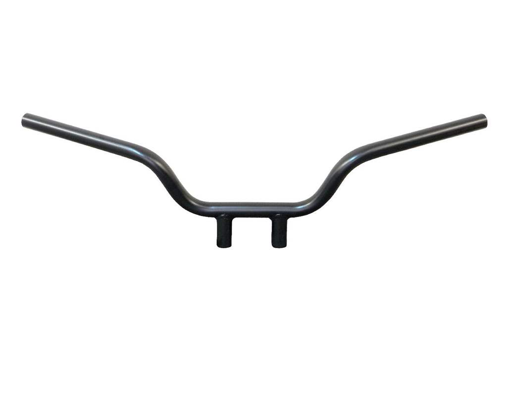 色:ブラックサイズ:全幅:約760mm 高さ:約70mm(ライザー底部からハンドル中心まで)プルバック:約40mm エンドライズ:約250mm対応ライザーボルトサイズ:1/2-13適合:純正トップブリッジのライザー間隔に準拠素材:スチール内容物:ハンドルバー×1注意事項:電子スロットルやトップブリッジとライザーが一体式のモデルには対応しません。当ハンドルバーには配線逃がし用のヘコミがあります。商品説明:人気のスーパーバーとライザーの融合により一体感が得られるハンドルバーですライザーを生やす位置を試行錯誤して理想のグリップ位置を導き出した逸品であり、フリスコスタイルやクラブスタイルをはじめとし幅広いスタイルに適応します。車両のイメージチェンジに是非!