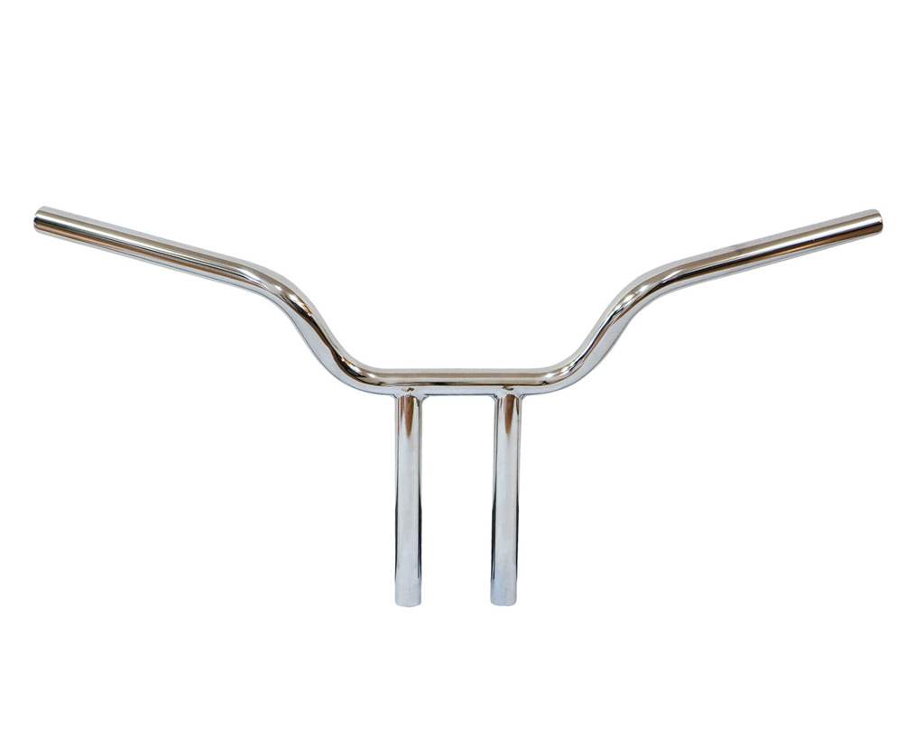 色:クロームサイズ:全幅:約760mm 高さ:約220mm(ライザー底部からハンドル中心まで)プルバック:約40mm エンドライズ:約370mm対応ライザーボルトサイズ:1/2-13適合:純正トップブリッジのライザー間隔に準拠素材:スチール内容物:ハンドルバー×1注意事項:電子スロットルやトップブリッジとライザーが一体式のモデルには対応しません。当ハンドルバーには配線逃がし用のヘコミがあります。商品説明:人気のスーパーバーとライザーの融合により一体感が得られるハンドルバーですライザーを生やす位置を試行錯誤して理想のグリップ位置を導き出した逸品であり、フリスコスタイルやクラブスタイルをはじめとし幅広いスタイルに適応します。車両のイメージチェンジに是非!