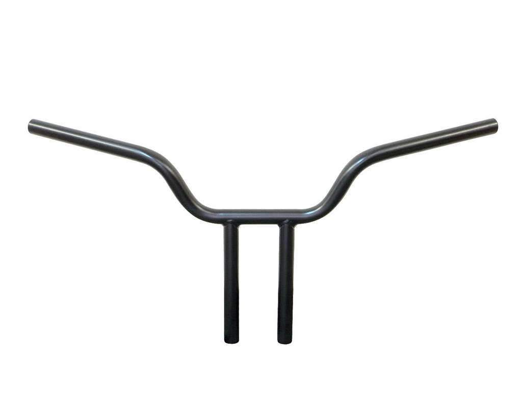 色:ブラックサイズ:全幅:約760mm 高さ:約220mm(ライザー底部からハンドル中心まで)プルバック:約40mm エンドライズ:約370mm対応ライザーボルトサイズ:1/2-13適合:純正トップブリッジのライザー間隔に準拠素材:スチール内容物:ハンドルバー×1注意事項:電子スロットルやトップブリッジとライザーが一体式のモデルには対応しません。当ハンドルバーには配線逃がし用のヘコミがあります。商品説明:人気のスーパーバーとライザーの融合により一体感が得られるハンドルバーですライザーを生やす位置を試行錯誤して理想のグリップ位置を導き出した逸品であり、フリスコスタイルやクラブスタイルをはじめとし幅広いスタイルに適応します。車両のイメージチェンジに是非!