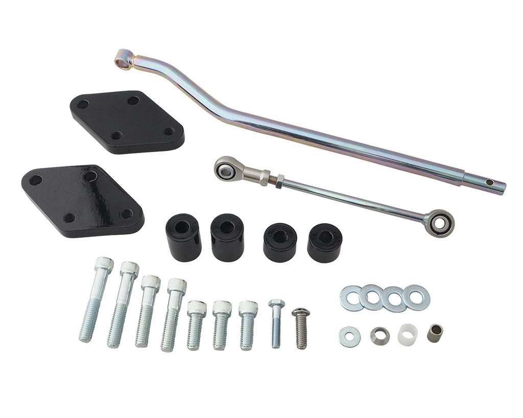 色:ロッド&リンケージ:ユニクローム プレート:ブラック適合:2014年式以降のフォワードコントロール仕様スポーツスターOEM品番:50700026内容物:ロッド×2(左右) プレート×2(左右) 取り付けハードウェア1式注意事項:フォワードコントロール仕様車のみに適合です。純正には付属しないシフトリンケージ用の台形スペーサーが付属します。シフトリンケージとシフトアームの間にご使用ください。商品説明:遠い位置にあるフォワードコントロールを約2インチ手前に移動するキットです。足周りの操作性の向上はもちろん、足のつっぱりが改善しますので、快適なライディングが期待出来ます。コントロールサポート、ブレーキとシフトレバーはノーマルを流用して装着します。