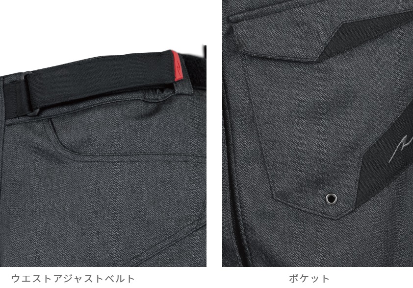 急な天候や気温の変化にも対応しライダーを守るライディングパンツ。様々な状況下で安定したコンディションをキープし、ショートツーリングからロングツーリング、 そしてハイスピード・ライディングと多様なステージまで幅広く活躍します。重要とされる、季節・気温・天候・場所に応じて 防風・防水・透湿・耐寒性と優れたベンチレーション機能により、驚くほど効果的に衣服内環境を最適に保ちます。また、バイクにまたがる時、ストレスなく脚が大きく開くライディング専用 の立体裁断のため、抜群の運動性能を実現。ライディング姿勢でも裾のずり上がりがありません。【優れたプロテクション性】腰・膝をガードするプロテクションパッドを装備しライダーを守ります。【上質な素材】軽く、肌触りの良いメイン素材で既存品にない軽やかな着用感で長時間の着用も苦になりません。【防水機能】実地テストを重ねた確かな防水機能で雨風の侵入をシャットアウトします。【機能的なポケット】使用シーンを考えて用意されたポケットはツーリングシーンでの使い勝手を考慮し設計されています。【豊富なサイズ設定】大きな方までカバーする豊富に揃えたサイズ設定であらゆるニーズに応えます。【オールシーズン対応】防寒インナー標準装備。外して使うのはもちろんオールシーズン対応ファスナーで寒いときにはオプションインナーを合体し、防寒性をアップすることも可能。表地/ヘリンボーンデュアルテックス加工(ポリエステル、ナイロン、TPUボンディング)、バリアクロス600D(ポリエステル)、難燃素材(アクリル、コットン)裏地/メッシュ(ポリエステル)、インナー/タフタ(ナイロン)インナー中綿/ウォームマックス(ポリエステル)PROTECTOR: ウエストバッド、ニーガード標準装備(ニーガードはCE規格)