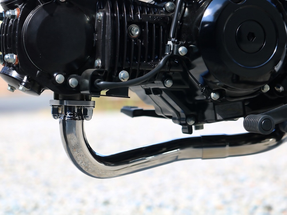 走行テストで得たデータから管長を探り、最終的にベンチテストで高速域におけるパワーフィールをアップデート。ピックアップの良さやアクセルの連動性、フィーリングの向上等、力強いパワー感を目指したマフラーです。エキパイはφ25.4→φ50 テールパイプへとテーパー設計を採用、ストレスのない吹け上がりに貢献してくれます。またエキパイは2ピース構造でスプリングジョイント接続とし、よりスポーティーな雰囲気を演出しています。小径丸型(ラウンド)サイレンサーが多い中、弊社はショートオーバルサイレンサーを採用。スリムでコンパクトなサイレンサーは車体の重量バランスにも貢献。25〜33%の軽量化も達成しており、操安性にも貢献しています。音質は低音を効かせたスポーティーな音質ですが、タウンユースやツーリングでも疲れにくい音質に仕上げています。ステンレスサイレンサー仕様:2.47kg(ノーマルマフラー重量は3.30kg)近接音値:87dB/加速騒音値:77dBOF/Dボルト:OKJMCA認証品