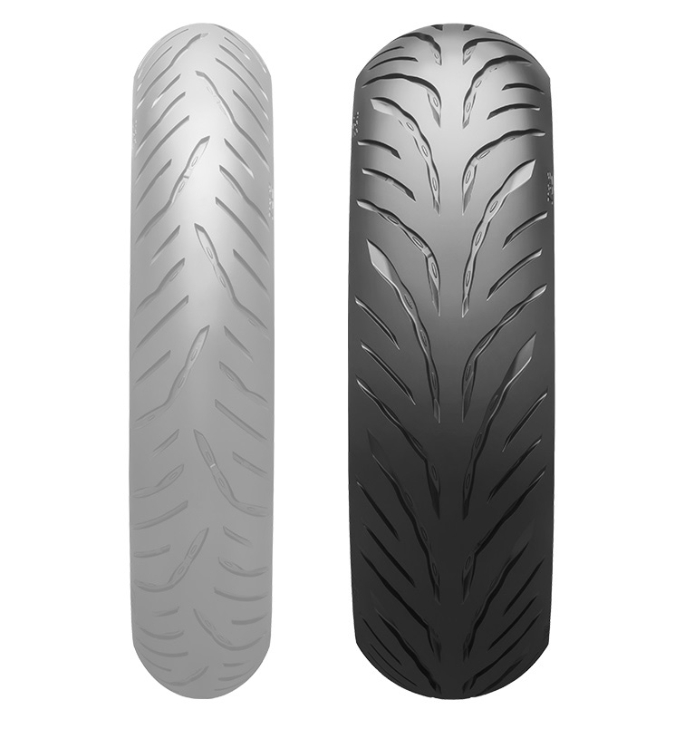 まるで脈を打つかのようなデザインのパルスグルーブ。水の流速が上がりウェット性能が格段に向上した。この安心感は大きい。さらに素直なハンドリングで扱いやすさも向上。もちろんドライ路面でも安定した性能を誇る。天候や路面に左右されず景色を、空気を、走りを堪能する。いつでも何処へでも「走りたい」と言う気持ちにさせてくれるのがSPORT TOURING T32だ。ツーリングバイク/タイヤでワインディングを楽しみたいお客様にスーパースポーツバイクでもツーリングタイヤを装着して楽しく走りたいお客様に高いウェット性能をお求めのお客様に出先やツーリング中の急な雨でも安心感をもって走りたいお客様に