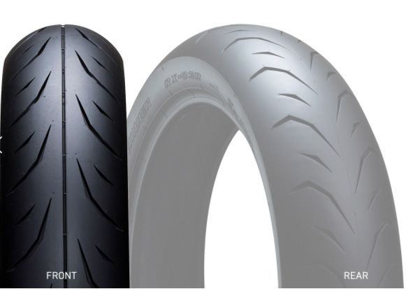 パターン名:RX03 SPEC-Rタイプ:チューブレスタイプF/R:フロントスポーツ走行におけるキレのある旋回性、高速コーナーでのグリップ感・コントロール性を高めた、サーキット走行にも対応するスポーツバイアスタイヤ。サーキット走行を楽しみたい方気軽にスポーツ走行を楽しみたい方高い旋回性とグリップ性能をお求めの方