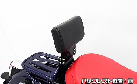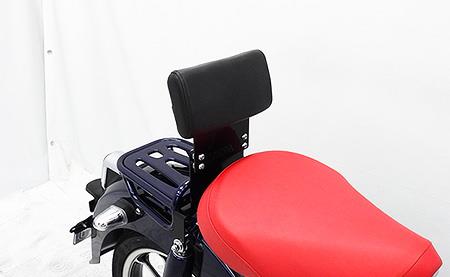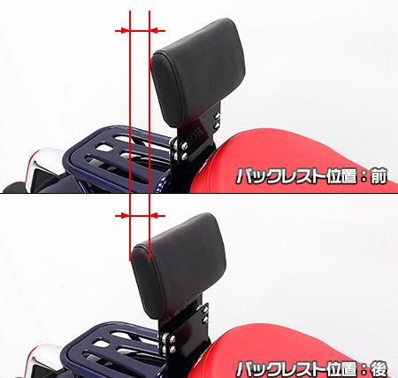 今までにありそうでなかった、リラックスして走行を楽しめるアイテムです。ピリオンパット側と車体側ブラケットが別体になっており、付属のカラーのオフセットでピリオンパット位置の調整が可能です。身体のサイズ、走行ポジションでお好みの位置にピリオンパットを設定できます。お客様で長いボルト、カラーを用意して頂きましたら、更にピリオンパットを後方に設定する事も可能です。バックレストの表面素材にはノーマルシートと似たシート生地を使用していますので、取って付けた感じは無くとても自然にマッチします。オリジナルバックレストは型から興して製作していますので、価格を抑えることに成功し見た目も良く耐久性に優れたしっかりとした作りになっています。加工無しでボルトオンで装着できます。純正キャリア(荷台)に対応していますので、社外品キャリア(荷台)には装着できない場合があります。ステーの素材は高剛性なスチール製、ブラック塗装仕上げです。