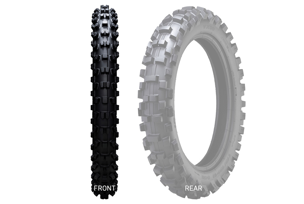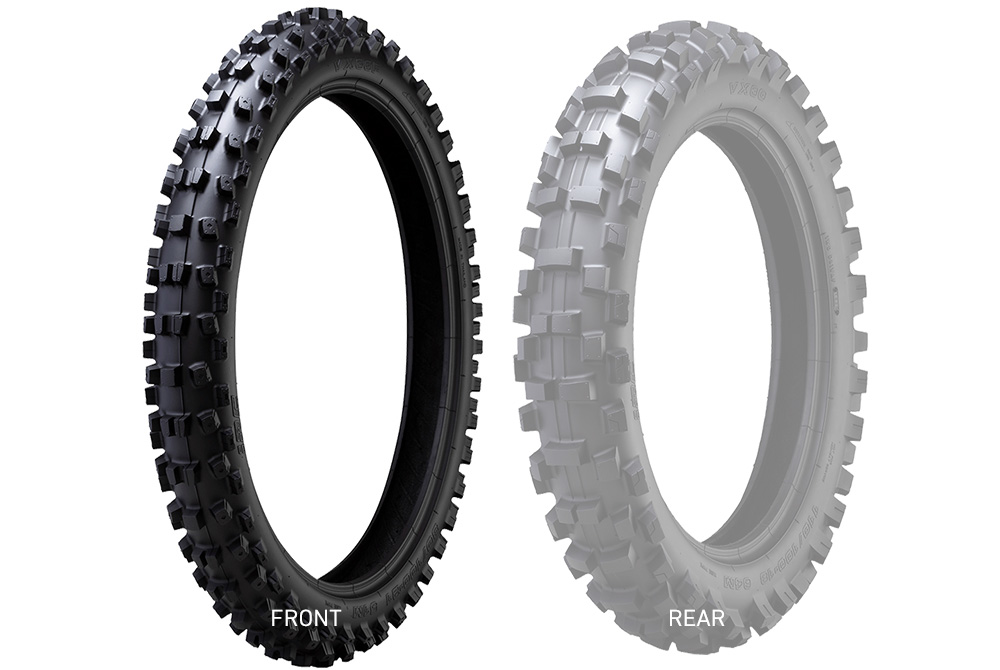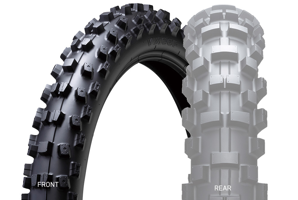 あらゆる土質で安定したパフォーマンスを発揮するユーザーファーストなタイヤをコンセプトに、エンデューロ、クロスカントリーのトップ選手と開発。フロントタイヤはショック吸収性に優れ、ブレーキング時の刺さり感がライダーに安心感を与え、リアタイヤは加速時、コーナー進入時の滑りが少なく、トラクション性能に優れた仕様となっています。※JNCCではプラザ坂下などモトクロス寄りのコースに適しています。公道走行不可VX30タイプ:チューブタイプ用途:フロント