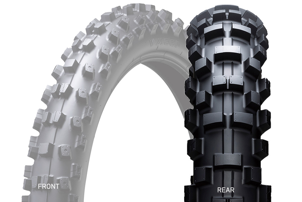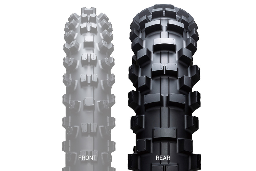 あらゆる土質で安定したパフォーマンスを発揮するユーザーファーストなタイヤをコンセプトに、エンデューロ、クロスカントリーのトップ選手と開発。フロントタイヤはショック吸収性に優れ、ブレーキング時の刺さり感がライダーに安心感を与え、リアタイヤは加速時、コーナー進入時の滑りが少なく、トラクション性能に優れた仕様となっています。