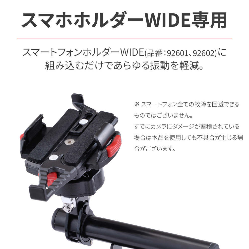 衝撃も!振動も!あらゆる振動を軽減!スマートフォンホルダーワイド(品番:92601、92602)に組み込むことでスマートフォンのカメラを守ります。カメラに悪影響を及ぼすバイク特有の振動(高周波数帯)や路面からの衝撃(低周波数帯)まで幅広くカバーします。デバイス内部には適度な柔軟性と高いエネルギー吸収性、耐久性を合わせ持った新素材を内蔵しています。医療機器の輸送など実績の高いengelookを採用しました。車種や取付位置をはじめ、スマートフォンホルダーの幅広い使用環境が想定されます。様々な条件下でのテストを行ないデータの蓄積をすることで、より価値の高い商品の提供を目指しました。スマートフォンホルダーワイド(品番:92601、92602)用オプション品カメラに悪影響を及ぼすバイク特有の振動を軽減医療機器の輸送など実績の高いengelookを採用高周波数帯から低周波数帯まで幅広くカバー※engelook(TM)は(株)アブソラボの商標です。※スマートフォン全ての故障を回避できるものではありません。すでにカメラにダメージが蓄積されている場合は本品を使用しても不具合が生じる場合があります。