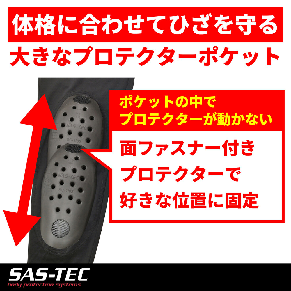 「さらばライディングウエア」お洒落ができるインナープロテクターパンツ普段は柔らかく衝撃時に瞬間硬化するSAS-TEC製プロテクターを、ひざ・サイドヒップに装備。ストレッチ生地を採用することでソフトな装着感と体へのフィッティングを両立させました。ひざプロテクター用のポケットを広く設計し、自分の体にあわせて位置調整が可能です。ポケット内で動かないように面ファスナー付きのひざプロテクターを採用しています。ソフトな装着感と体へのフィッティング、安全性を向上させたプロテクターインナーパンツです。衝撃時に瞬間硬化するSAS-TEC製プロテクターをひざ・サイドヒップに装備したインナーパンツ摩耗に強い特殊生地「HPPEマテリアル」をヒップ周り、足の外側に その他の部位にはストレッチ生地を採用本品を着用すればお手持ちのパンツもライディンウエアに早変わりSAS-TEC規格:サイドヒップ (CEレベル1) ひざ (CEレベル2)※本製品はモーターサイクルライディングウエアとしての快適性および安全性を重視して開発されておりますが、転倒時など外部からの衝撃に対して、身体を完全に保護できるものではありません。ライディング時は常に安全運転をお願いいたします。※重ね着による摩擦により、色落ち、色移りする場合があります。※ご自身の体にフィットするものをお選びください。サイズが合っていないウエアを着用されますと、プロテクション効果が充分に発揮されない場合やライディングに支障をきたす場合もあり非常に危険です。