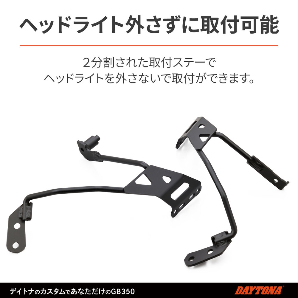 GB350/S共用設計のスクリーンキット。ブラストバリアーとスクリーン取付ステーがセットになったボルトオン設計です。走行中にライダーへの風圧を弱め疲労を軽減し、雨・虫・飛び石からライダーを保護します。取付ステーはスクリーンをしっかりマウントできる3点支持タイプ。ステーは左右分割構造でヘッドライトを外さずに取り付けが可能です。スクリーン角度を3段階調節可。スクリーンは安心の日本製ポリカーボネイト。3段階の角度調節ヘッドライトを外さずに取り付け可能別売のVELONA タコメーターキット(品番:21912/21943)と同時装着可能。純正アクセサリーのUSBソケットと同時装着可能
