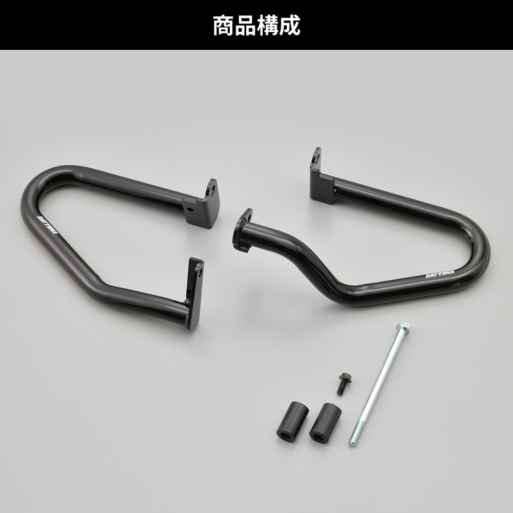 パイプエンジンガードシリーズ最大径のφ28.6スチールパイプを採用したエンジンガード。車体の保護性能とワインディングロードでの快適な走行性の両立を追求したパイプレイアウトを採用。張り出しを最小限に抑えつつ、立ちゴケなどの軽度な転倒に対し、エンジンやカウルのダメージを軽減します。フレームに合わせたグロスブラック仕上げのペイントは耐候性にも優れています。【仕様1】極太Φ28.6mmのパイプエンジンガードが、地面とバイクに身体が挟まれることから守ります【仕様2】極太Φ28.6mmのパイプエンジンガードが、クランクケース回りを保護し、エンジンへのダメージを最小限に抑えます【仕様3】大きく外側へ張り出さない仕様で、装着してもスタイリッシュで目立ちにくいデザイン【仕様4】車体フレームに合わせたスチール製グロスブラック仕上げ※過度な転倒時には商品が破損する恐れがあります。※本商品はブラック塗装のため、飛び石やバイク保管用保護カバーとのこすれ等で塗装がはがれる場合があります。