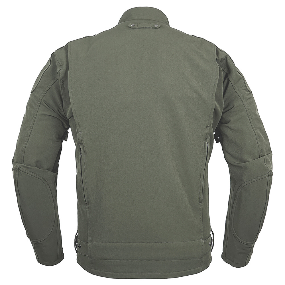 ビンテージ感たっぷりなデザインは時と場所、そしてバイクを選びません。メイン素材にエアスルーソフトシェルを採用し夏場も日差しを遮りつつ程よい通気性があり、風を通しすぎないため、春夏秋と長期間着用可能。また、袖ベンチレーション、後ベンチレーションも装備されているのでため、真夏のライディングも快適です。ストレッチ性のある表素材と、動きやすいライディングフォーム専用の立体裁断よりストレスを感じさせない軽快な着心地です。洗練されたスタイルがコーディネートの幅と、行動範囲をグンと広げてくれます。MATERIAL:表地/ポリエステル 裏地/ポリエステル 襟裏/アイスムースPROTECTOR:肩・肘・脊椎パッド付属(胸パッドは別売りオプション)