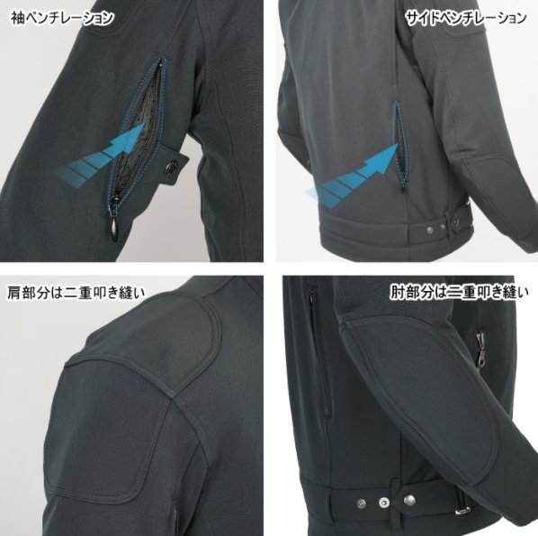 ビンテージ感たっぷりなデザインは時と場所、そしてバイクを選びません。メイン素材にエアスルーソフトシェルを採用し夏場も日差しを遮りつつ程よい通気性があり、風を通しすぎないため、春夏秋と長期間着用可能。また、袖ベンチレーション、後ベンチレーションも装備されているのでため、真夏のライディングも快適です。ストレッチ性のある表素材と、動きやすいライディングフォーム専用の立体裁断よりストレスを感じさせない軽快な着心地です。洗練されたスタイルがコーディネートの幅と、行動範囲をグンと広げてくれます。MATERIAL:表地/ポリエステル 裏地/ポリエステル 襟裏/アイスムースPROTECTOR:肩・肘・脊椎パッド付属(胸パッドは別売りオプション)