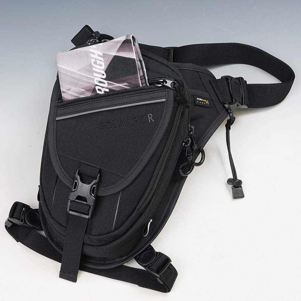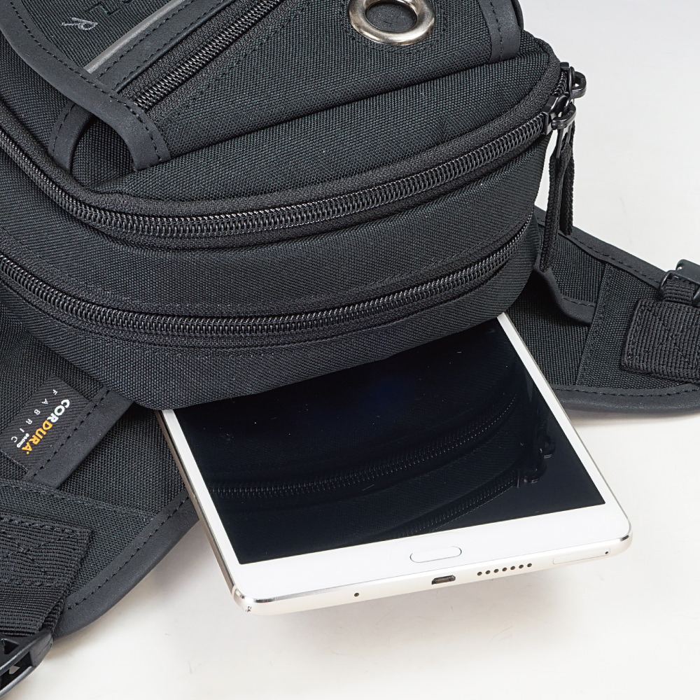 メイン気室は高さ約30cm、最大横幅18cm、最大厚み9cmに加え、5箇所のポケットを持つ4?の容量を誇る収納力に秀でたホルスターバッグです。