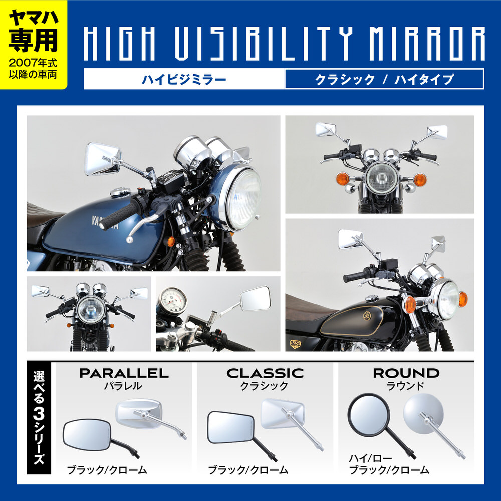 ハイビジミラー 片側1本 左右共通 ヤマハ専用(2007年式以降) クラシック/ハイ クロームメッキ DAYTONA(デイトナ)