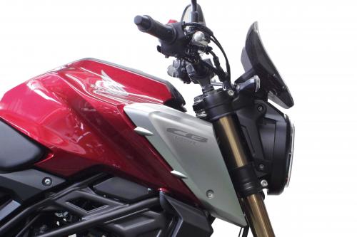 メーターにバイザーを固定することで、風防効果を発揮することが出来ます。これにより、走行時の空気抵抗によるライダー疲労を軽減出来ます。純正部品のようなフィッティングの為、車両のスタイリングを崩すことなく、取付けることが出来ます。スクリーンはポリカーボネイト製でスモーク仕様を採用。固定用ステーはスチール製ブラック塗装仕上げ。