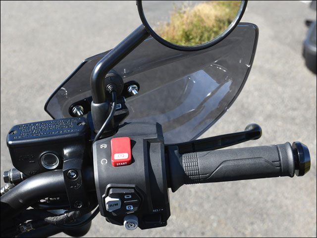 走行風よりライダーの拳や指先を保護するナックルガード。シールド本体はポリカーボネイト製十分な強度をもたせた取付けステーは高い風圧を受けてもガタツキが出ないように考慮された形状を持ち、左右のミラーに共締めするだけのボルトオン設計です。クラッチ側はホルダーの隙間にステーを差し込むことで回り止めとしています。ブレーキ側はマスターシリンダーの形状に合わせたステー形状。回り止めの役目を果たします。クラッチ側はホルダーの隙間にステーを差し込むことで回り止めとしています。ブレーキ側はマスターシリンダーの形状に合わせたステー形状。回り止めの役目を果たします。