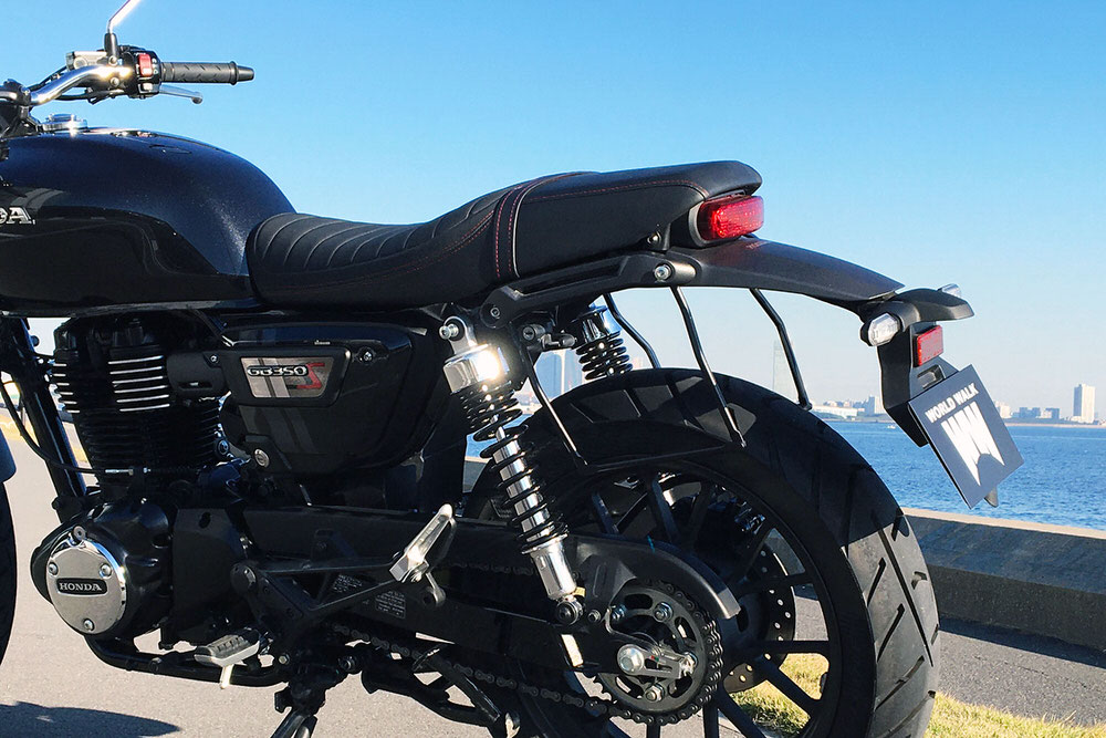 ・素材:スチール・作業時間:0.5h・付属品:バックサポート本体(1本)・取付ボルト類・取扱説明書・サイズ:縦 225mm・横幅 200mmサドルバッグを車両に取り付ける際にタイヤに巻き込まれて傷がつかないようにする為のパーツがサドルバッグサポートです。一本で左側・右側どちらも対応可能な仕様となっているので、お好みに合わせて取り付けをして頂けます。一本の棒に関節を二つ設け、フレキシブルに関節が動く設計です。サイドバッグ装着時の巻き込まれ防止のためにサドルバッグを車両に取り付ける際にタイヤに巻き込まれて傷がつかないようにする為のパーツがサドルバッグサポートです。バッグの巻き込みを防止する為に、バッグを車体側から少し外にオフセットするように設計しました。左右どちら側にも取り付け可能殆どのバッグサポートが左右どちらかにしか取り付けできない仕様です。ワールドウォークのバックサポートは左右対称の設計なので1本で左側・右側どちらに取り付ける事も可能です。※写真は左右両側に取り付けておりますが、実際のセット内容は片側1本のみとなります。GB350Sの車種の形状の合わせた専用ボルト車体とグラブバーでバックサポートを挟み込む形で取り付けを行います。荷掛けフックとして使用する純正ボルトはそのまま取り付けに使用するため、バックサポートの取り付けを行っても荷掛フックの使用に影響は出ません。※GB350には適合しません。Sモデル専用品です。