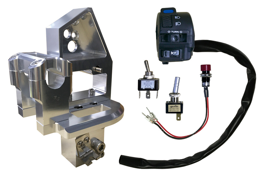 ・カラー:シルバー・素材:アルミ・作業時間:1.5h・付属品:ポスト本体 ワイパースイッチ ウィンドウォッシャー プッシュスターター ヘッドライト/ホーンスイッチ 取扱説明書アルミパーツを積み木のように組み合わせ、ステンレスのボルトでしっかりと固定したハンドルポスト。キーシリンダーやパーキングレバーなど、全ての装備をボルトオンで装着可能です。カスタムベースとしても人気のジャイロキャノピーですが、ハンドル周りは複雑で手を出しずらいポイント。 そこにハンドルポストを付けてバーハンドル化する事により、カスタム車両のイメージが強くなります。 また、バーハンドル化する事により操作性が向上し、自分にとってベストなポジションでの操作が可能になります。ウインカーは使いやすいプッシュキャンセル式を採用ヘッドライトのハイロー、ホーン、ウィンカー、のオン、オフをハンドルの左側スイッチで制御できるようにしました。簡単にカスタムハンドルカウル右側に装着されていたセルモータスイッチとウインドウォッシャー液のスイッチは、無理してハンドルに装着せず、フロントカウルに穴あけして装着する方法を選択しました。スイッチは有名なAMON製を付属しております。新たにワイパースイッチが付属信頼性の高いAMON製のスイッチはワイパー作動中にワイパースイッチをオフにしても、スクリーンの端まできちんとワイパーが戻る仕様になっております。※4st車両専用となります。