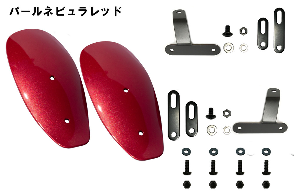 ・素材:ナックルガード本体/アクリル 取り付けステー/スチール黒塗装仕上げ・作業時間:0.5h・サイズスペック 縦:115mm 横:250mm・付属品:スクリーン本体・取り付けボルト一式・取扱説明書新型モンキー125の新たな純正アクセサリーとしてグリップヒーターも設定されているので、ナックルガードとセットで使用する事で防寒対策もバッチリです。「見た目の印象が変わってしまうからナックルガードは付けない」そんな方も居ると思います。純正色塗装を施したナックルガードはモンキー125のイメージを損なわず、あなたの車両にマッチしてくれる筈!ナックルガードを避けてきた方にこそ、試して頂きたい製品です。パール部分まで再現した純正色塗装「ナックルガードを付けると見た目が…」そんな声をよく耳にします。そんな方にこそ、ナックルガードの利便性を知って頂きたく、純正色塗装のナックルガードは生まれました。車両の色を完全再現する事により、車体に取り付けた際の違和感が軽減されます。光が当たっているときに見えるパール粒の大きさも揃えた仕上がりがポイントです。小ぶりながら高い防風・防雨効果を発揮手元に当たる雨・風は一年を通してかなりのストレスになるもの。ましてや冬の寒さは対策必須です。ナックルガードは小ぶりながらもしっかり防風効果を発揮してくれるので防寒対策としても人気です。新型モンキー125の新たな純正アクセサリーとしてグリップヒーターも設定されている為、ナックルガードとセットで使用する事で防寒対策もバッチリ!2つのサイズのステーが付属ミラーを外してステーを挟みこみ ボルトオンで簡単に取り付けていただくために、サイズ違いのステーを付属しております。「シンプル ・ 取り外し簡単 ・ 持ち運びも可能」という3つの基準をクリアするナックルガードを設計しました。ハンドルと緩衝しない設計なので、ハンドル操作への影響も無し。安心してお使い頂けます。※受注生産の為お届けまでにお日にちを頂戴しております。(2か月程度)※デザイン・仕様は予告なく変更されることがございます。予めご了承ください。