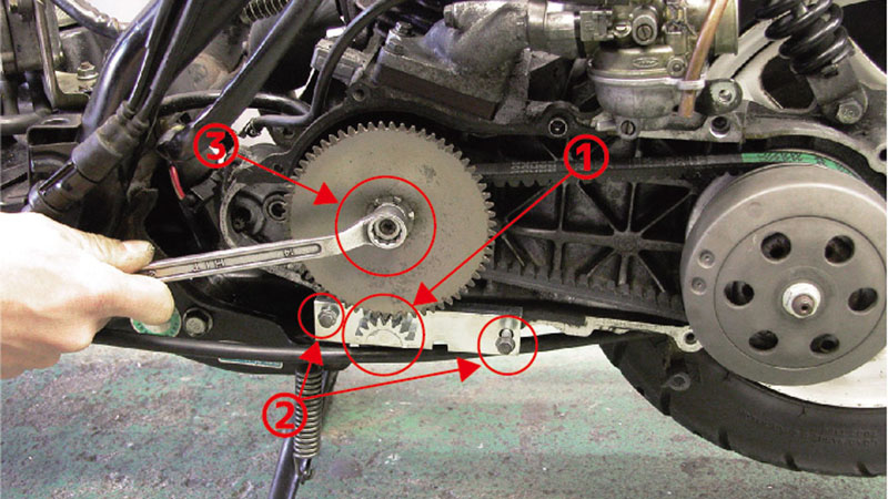 ドライブフェイス・ベルト・プーリーを外す際に必要なロックツールです。安心の日本製!本製品をドライブフェイスギアに噛み合わせます。本製品をケースカバーのネジ穴を利用し純正ボルトで固定後ドライブフェイスの回転をロックします。これでセンターナットを緩めることが出来ます。