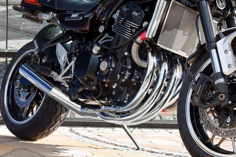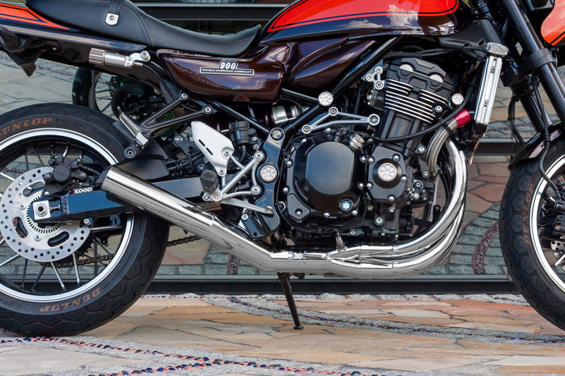 42.7mmのエキパイをベースに6ピースのパイプで構成されるド迫力のショート管です。テールエンドは従来型に比べ約70mm延長することで全体のバランスを調整し、Z900RSのシルエットにベストマッチするデザインへと仕上げました。エキパイは量産型3Dベンダーによる精密な弧を描きながらゆるやかに集合させ、どの角度から見ても4本が美しく揃うように仕上げました。エキパイ自体を僅かに延長することでショート管のスタイルを重視しながらも低速トルク感を向上させました。クローズドコース専用モデルは、音排気量を約105dbに設定しキャタライザーとターンアウト構造を廃することで純正マフラー比で約6%のパワーアップと共に高回転まで一気に吹け上がるストレート管仕様です。マフラー交換の際に必須なエキゾーストガスケットを1台分4個付属。別途買い求め頂く必要はございません。メンテナンス:エンジンオイルおよび、オイルフィルターはマフラーを装着したまま交換作業が可能です。「ARCHI」サイレンサーエンブレム(189-2091)1枚が付属します。【 製品概要 】・フランジ材質:アルミ材(A2017) / 2ピース構造採用、ブラックアルマイト処理・エキパイ材質:スチール材 (STKM)・集合部材質:スチール材 (STKM)・テールパイプ材質:スチール材 (STKM)・表面処理 or 仕上げ:サンドブラスト処理、クロームメッキ仕上げ・溶接方法:TIG溶接及びMIG溶接・本体重量:6.5kgオイル交換:OKオイルフィルター交換:OKセンタースタンド:×(オプションセンタースタンド使用不可)【※クローズドサーキット専用マフラー】