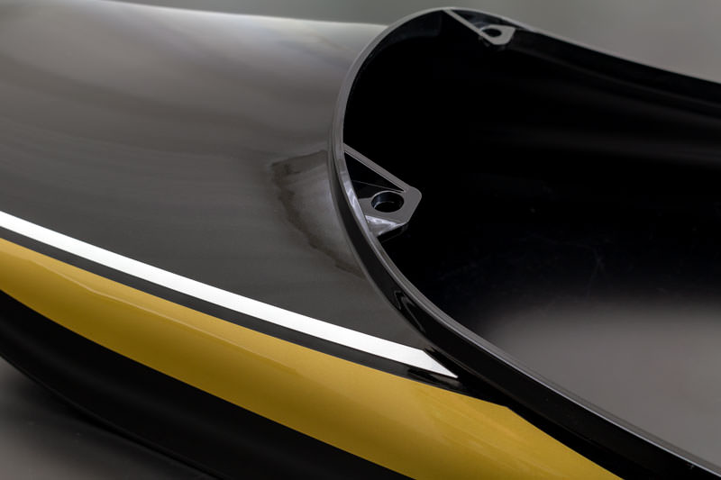 僅かに反り上がりながら60mm延長されたテールカウルは、外周端面にZ同様の高級感を演出するリブを設けRSのリアビューをより一層Zらしく蘇らせると共に、車体全体を最高のスタイリングバランスへと変貌させます。ver.2に生まれ変わりよりシャープで攻撃的に設計されたリアビューのマウンティングは、拘った厳しい基準で幾度も校正され、シート、テールランプ等のマウントは絶妙なクリアランスで仕上げられています。大掛かりな金型から射出成型されるABS製ならではの緻密で正確な品質は、高剛性、耐衝撃性に加え、耐熱と耐寒性も兼ね備えた仕上がりとなっています。本製品は一流塗料メーカーと提携し純正色とほぼ同等の特別調色を施し最高品質の焼き付け塗装を施しお届け致します。1975年Z1B(玉虫ブルー)のグラフィックを踏襲しております。【備考】※純正の荷掛けフックは併用不可となります。※ 本製品はARCHI フェンダーレスキット TYPE-3、アイアンフェンダーレスキット、またはARCHI スライトリアフェンダーと同時装着を基準にて設計されております。 他メーカーのフェンダーレスキットとの併用は適合確認が取れておりません。※純正オプションのグラブバーを併用するには品番:189-1350 タンデムバー取付スペーサーが別途必要となります。※ロングテールカウルをご使用の際、テールランプがノーマル位置のままではカウルの中に隠れてしまいます。しかし、PMC製品でありのバックマウントキットやフェンダーレスキットを併用することにより、テールランプの位置を後方へ移設することができます。※他社のフェンダーレスキットではバックマウントされませんのでご注意ください。