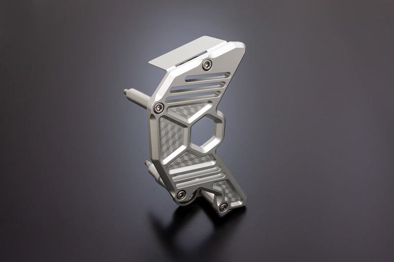 10mm厚の無垢材から削り出され、大胆な肉抜き加工とコンパクトなデザインはカバーの奥にチラリと見えるスプロケットやドライブチェーン周りと相まってエンジンのメカニカルな美しさを一層引き立てます。シフト操作の際に起こるチェンジシャフトのしなりや弛みを軽減させるシフトホルダーを装備し、確実でダイレクトなシフトフィールを実現します。取付に必要なマウントボルト付き。