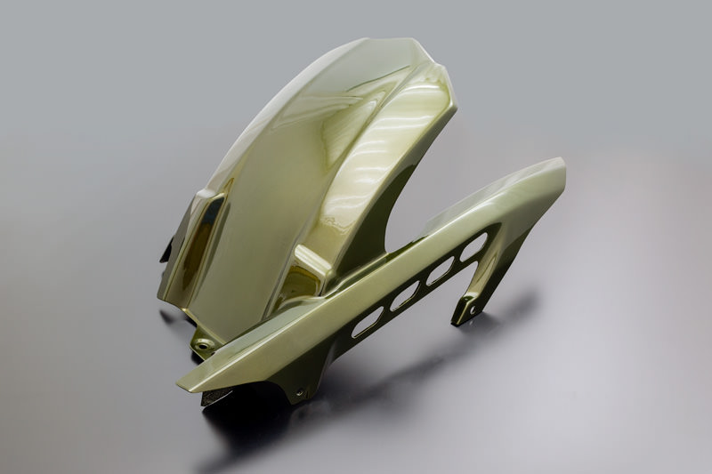 STDのチェーンカバーを兼ねたデザインを踏襲しながら約120mm後方に延長することで、泥跳ねや水撥ねを大幅に軽減すると共に、 テールカウルとタイヤとの「隙間感」を無くす事で、より一層攻撃的でレイシーなリアビューを飾り上げます。ver.2では形状を見直すことで、タイヤのアールに美しく沿いながらも、ノンストレスで装着ができるほど歪みを減らすことに成功。本製品は一流塗料メーカーと提携し純正色とほぼ同等の特別調色を施し最高品質の焼き付け塗装を施しお届け致します。取付けはノーマルリアフェンダーと付け換えるだけのボルトオン※取り付け写真はエボニーを使用しています