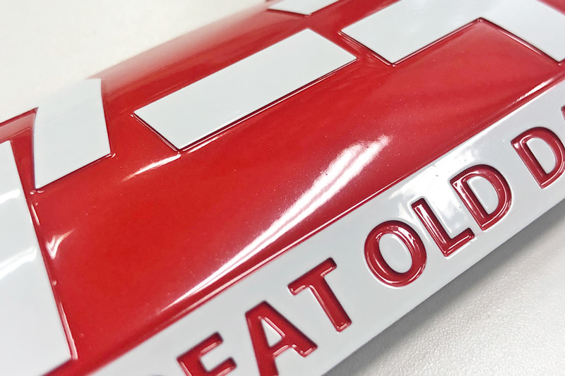 エキゾーストサイレンサー用の両面テープタイプ「アーキ」エンブレム。サイズ:85mmx55mm