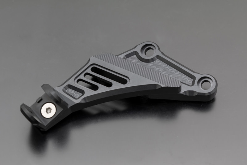 ARCHI手曲げワンピースショート管/427ショート管/LOUDEXショート管マフラー専用設計のタンデムブラケット。純正タンデムステップでは不要となるマフラーマウントを持たず、、さらに上方に65mm、後方に25mmのコンパクトなポジションとなり、サイドビューをよりスマートに演出します。15mm厚の無垢材を使用し、裏側から大胆に肉抜きし加工を施すことで高剛性と軽量化を両立。左右1台分でのデリバリー。フレーム取付ボルト、ステップバーは純正をご使用します。