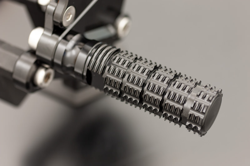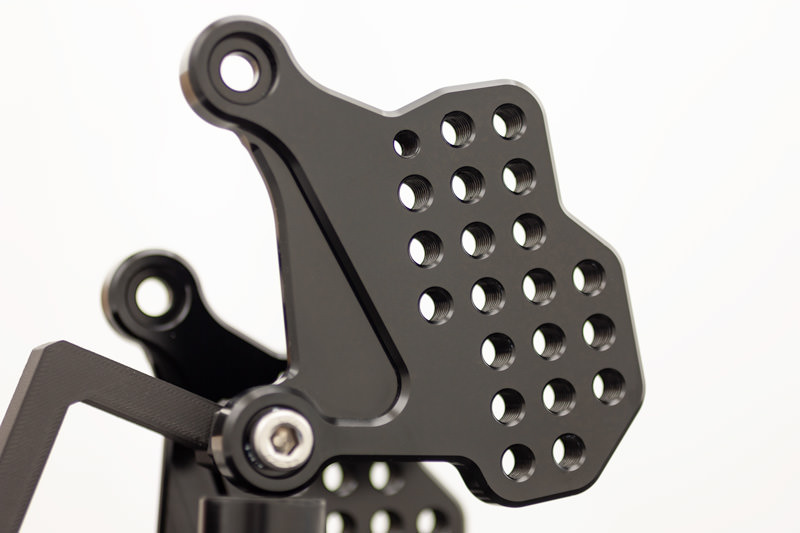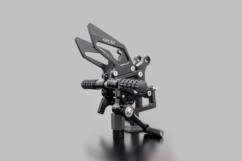 スーパースポーツの代名詞と成るZX-25Rにふさわしい先鋭的なデザインと、軽量化と剛性・強度にこだわったALL-Billetジュラルミン・バックステップキット。またレースからストリートまであらゆるシチュエーションにおける最高の操作性を追求し、5段階から選択できる5ステージポジションシステムを採用しています。ポジションはSTD比で後方に最小45mm最大57.5mm、上方に最小35mm最大60mmまで移動が可能。※左右ペダル先端部は2カ所のポジション変更可能。※ステップバーはノンスリップ性に優れた切削ローレット加工。※左右ペダル部はスムーズなペダル操作ができるよう、ダブルベアリングを採用。※ブレーキホース、ブレーキスイッチは純正品のご使用が可能。※取付に必要なマウントカラー、ボルト類まで付属したオールワンセット。【5ステップポジション詳細】45mm Back / 35mm Up45mm Back /47.5mm Up57.5mm Back /35mm Up57.5mm Back /47.5mm Up57.5mm Back /60mm Up※クイックシフター装着車※逆シフトは使用不可