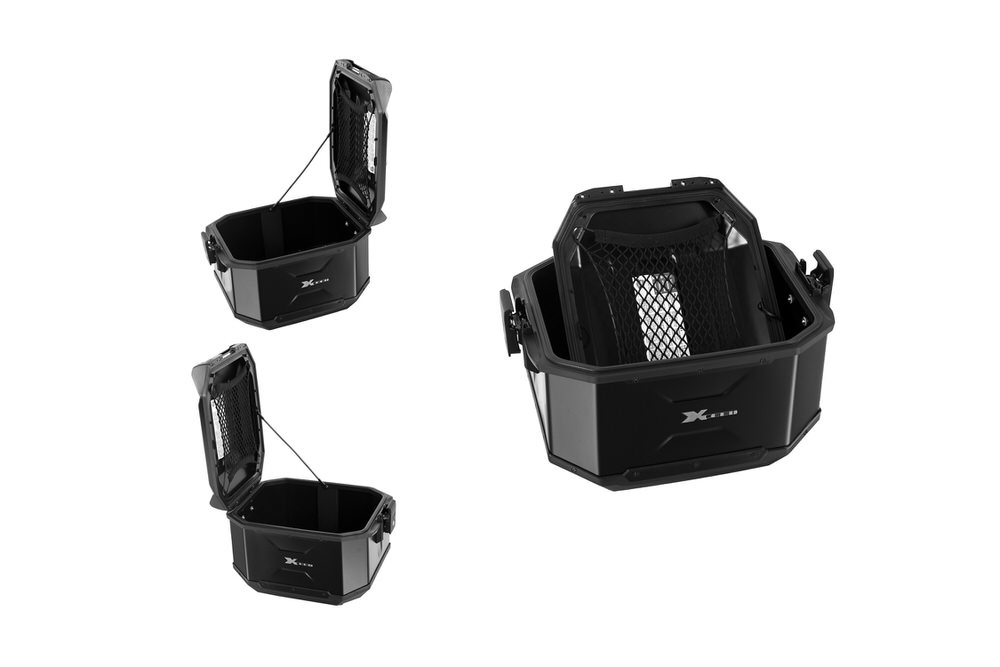 サイドケース左右とトップケースのセット。1つの鍵ですべてのボックスが開けられるセイムキー標準装備となります。完全防水ではありません。ハンドメイドによる製作跡、輸入による輸送傷があります。製品特性となりますことをご理解ください。積載重量:トップケース:5.0kg、サイドケース(片側)10.0kg色:ブラック材質:アルミ+強化プラスチックサイズ:トップH:H:310×W:500×D:370(mm) サイド:H:380×W:500×D:270(mm)重量:トップ:4.8kg サイド:(片側)4.9kgタイプ:XCEED内容:3BO×セット(トップ、右側、左側、各1個)付属品:キー3個、サイドケース固定用キャリアアダプター(700114) 2個 ※アダプタ固定用のボルト、ナットはサイドケースキャリアに付属します。容量:トップ:45L サイド:38L備考:取り付けには別途車種専用のサイドケースキャリアが必要です。※本製品は完全防水ではありません。雨天走行、雨天放置によりボックス内に水が浸入する可能性があります。※ケースを車両に装着するには、ヘプコ&ベッカー専用のケースキャリアが必要です。使用上の注意:トップケースキャリア、サイドキャリアの積載重量・車体の積載上限以上の積載をしないでください。走行中にボックス内の積載物が動かないように積載してください。
