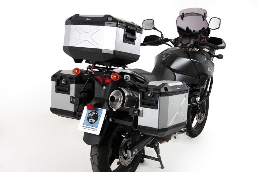 XPLORERサイドケース30左右+トップケース45のセット品。セイムキーとなります。※取り付けには多少の加工が必要な場合があります。製品不良でない限り返品はお受けできません。積載重量:トップケース:5.0kg、サイドケース(片側)10.0kg色:シルバー材質:アルミ+強化プラスチックサイズ:トップH:310×W:470×D:375(mm) サイドH:380×W:480×D:220(mm)重量:トップ:5kg サイド:(片側)4.4kgタイプ:XPLORER内容量:3BOXセット(トップ、右側、左側、各1個)キット内容:XPLORER(シルバー)サイドケース30左右+トップケース45のセット付属品:キー3個、サイドケース固定用キャリアアダプター(700114) 2個 ※アダプタ固定用のボルト、ナットはサイドケースキャリアに付属します。容量:トップ:45 サイド:30L取り付けには別途車種専用のサイドケースキャリアが必要です。※本製品は完全防水ではありません。雨天走行、雨天放置によりボックス内に水が浸入する可能性があります。※ケースを車両に装着するには、ヘプコ&ベッカー専用のケースキャリアが必要です。注意:リアキャリア・サイドキャリアの積載重量・車体の積載上限以上のは積載しないでください。走行中にボックス内の積載物が動かないように積載してください。本製品は完全防水ではありません。雨天走行、雨天放置によりボックス内に水が浸入する可能性があります。ケースを車両に装着するには、ヘプコ&ベッカー専用のケースキャリアが必要です。