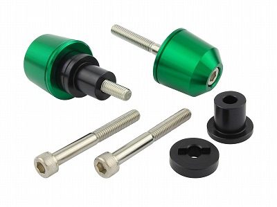 シンプルなデザインソリッドバーエンド。カワサキ車純正M6タイプ(純正ハンドルバー用)【素材/材質】アルミ削り出しアルマイト/メッキ仕上げ【重量】1個あたり約60g【付属品】カワサキ車専用M6アダプター:2個5mmスペーサー:2個M6×50mmステンレスキャップボルト:2本M6×55mmステンレスキャップボルト:2本【仕様】最大外径:29.5mm左右セット日本製・付属パーツの組み合わせにより、カワサキ車の純正ハンドルに対応が可能です。取り付け用ボルトは2種類(M6×50、55mm)付属しております。※使用するグリップ・車種によってはワッシャー等で調整が必要な場合があります。※ボルトの飛び出しは、取り外したバーエンドと比較し調整してください。※車体によっては付属のボルトでは不十分な可能性も考えられますので予めご了承ください。※取り付けの際、脱落防止の為、ネジロック剤の塗布を推奨致します。適合参考車種NINJA250SL(2015〜2016年)NINJA650(2017〜2019年)Z650(2017〜2019年)NINJA H2-SX(2018〜2019年)NINJA H2-SX SE(2018〜2019年)NINJA H2-SX SE+(2019年)