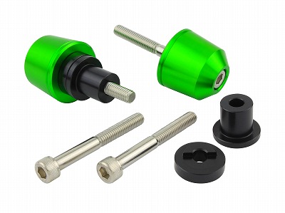 シンプルなデザインソリッドバーエンド。カワサキ車純正M6タイプ(純正ハンドルバー用)【素材/材質】アルミ削り出しアルマイト/メッキ仕上げ【重量】1個あたり約60g【付属品】カワサキ車専用M6アダプター:2個5mmスペーサー:2個M6×50mmステンレスキャップボルト:2本M6×55mmステンレスキャップボルト:2本【仕様】最大外径:29.5mm左右セット日本製・付属パーツの組み合わせにより、カワサキ車の純正ハンドルに対応が可能です。取り付け用ボルトは2種類(M6×50、55mm)付属しております。※使用するグリップ・車種によってはワッシャー等で調整が必要な場合があります。※ボルトの飛び出しは、取り外したバーエンドと比較し調整してください。※車体によっては付属のボルトでは不十分な可能性も考えられますので予めご了承ください。※取り付けの際、脱落防止の為、ネジロック剤の塗布を推奨致します。適合参考車種NINJA250SL(2015〜2016年)NINJA650(2017〜2019年)Z650(2017〜2019年)NINJA H2-SX(2018〜2019年)NINJA H2-SX SE(2018〜2019年)NINJA H2-SX SE+(2019年)