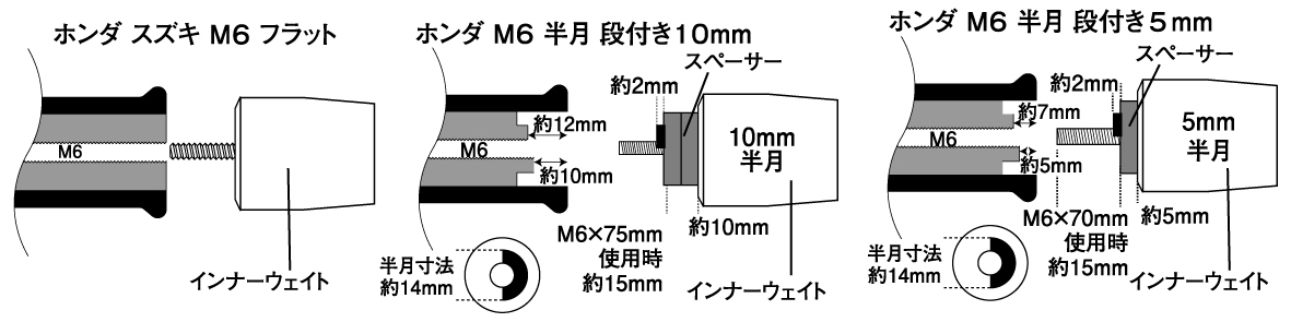 ホンダ、スズキ、ヤマハ車純正M6タイプ(純正ハンドルバー用)