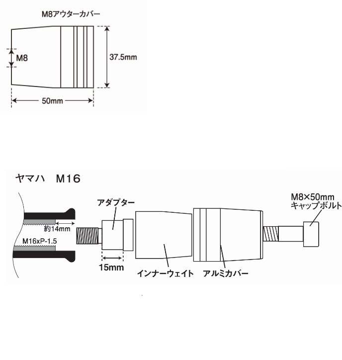 汎用(ヤマハ車純正16mmP-1.5ボルト径に適合)