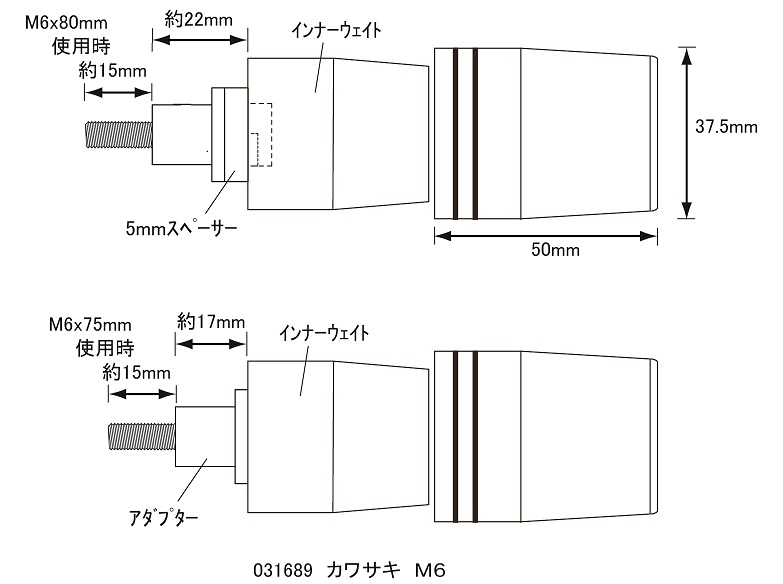 超重量級ウルトラヘビーバーエンド。カワサキ車純正M6タイプ(純正ハンドルバー用)真鍮製インナーパーツ内蔵の防振ウェイトバランサータイプのバーエンドです。アウターパーツはアルミ製となっていますので車体に合わせてカラーをお選びいただけます。付属パーツの組み合わせにより、カワサキ車M6タイプの純正ハンドルバーに対応が可能です。取り付け用ボルトは2種類(M6×75、80mm)付属しております。【素材/材質】インナー:真鍮メッキ仕上げアウター:アルミアルマイト/メッキ仕上げ【重量】1個あたり約340g【付属品】カワサキ車専用M6アダプター:2個5mmスペーサー:2個M6×75mmステンレスキャップボルト:2本M6×80mmステンレスキャップボルト:2本【仕様】・防振ウェイトバランサータイプ・最大外径:37.5mm・日本製※使用するグリップ・車種によってはワッシャー等で調整が必要な場合があります。※ボルトの飛び出しは、取り外したバーエンドと比較し調整してください。※車体によっては付属のボルトでは不十分な可能性も考えられますので予めご了承ください。※取り付けの際、脱落防止の為、ネジロック剤の塗布を推奨致します。【適合参考車種】NINJA250SL(2015-2016)NINJA650(2017-2020)Z650(2017-2020)NINJA H2-SX(2018-2019)NINJA H2-SX SE(2018-2020)NINJA H2-SX SE+(2019-2020)