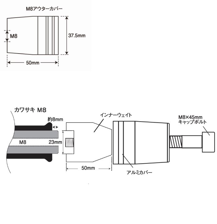 汎用(カワサキ車純正8mmバーエンド穴に適合)